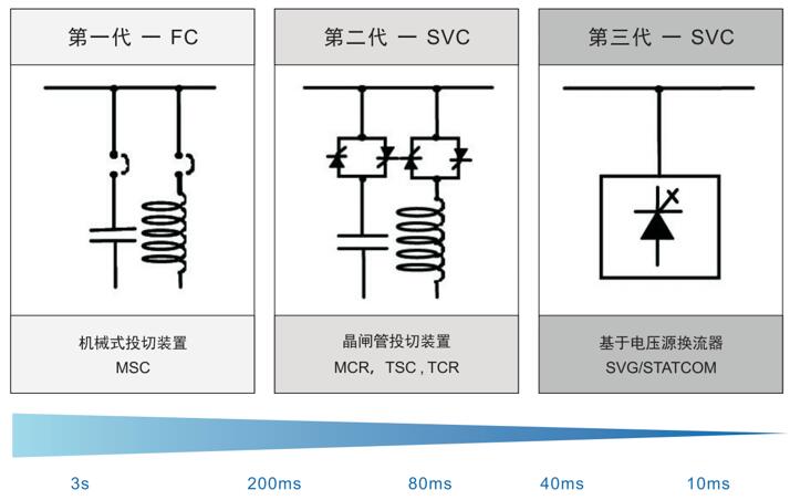 比起第一代和第二代无功补偿,第三代SVG无功补偿速度更快,补偿范围更广(容性感性可调)