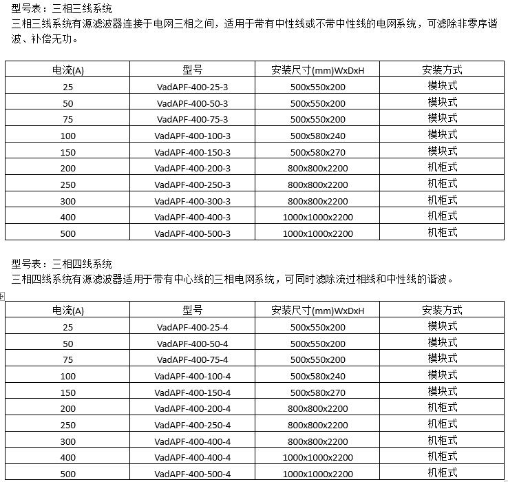 ►多种选择:有源电力滤波器拥有电流从25A-500A,三相三线和三相四线的产品。